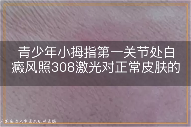 嘿,青少年朋友们,如果你或你的小伙伴在小拇指第一关节处发现了白癜风,别担心,现代医学有很多方法来帮助解决这个问题。其中,308激光治疗是一种常见且有效的治疗方式。那么,大家可能会好奇,这种激光治疗会不会对周围的正常皮肤造成影响呢?今天,我们就来聊聊这个话题。